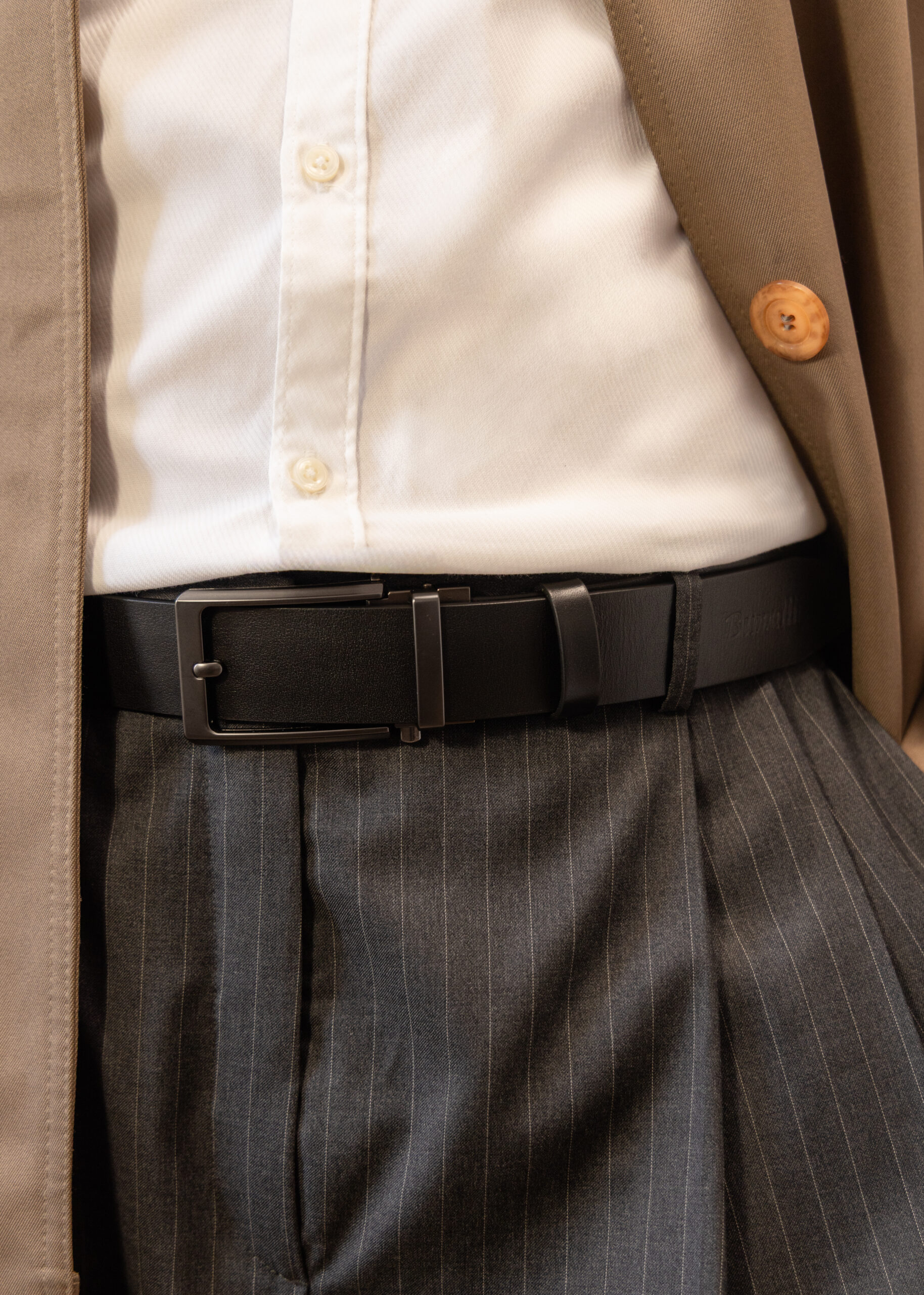 With its deep black tone and clean, minimal design, Atlas pairs just as well with tailored trousers and a shirt as it does with jeans and sneakers. It’s a versatile men’s leather belt that works for both office days and evenings out.