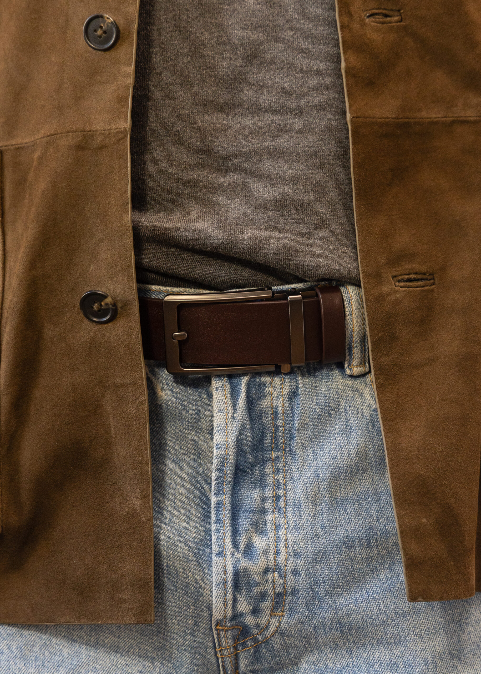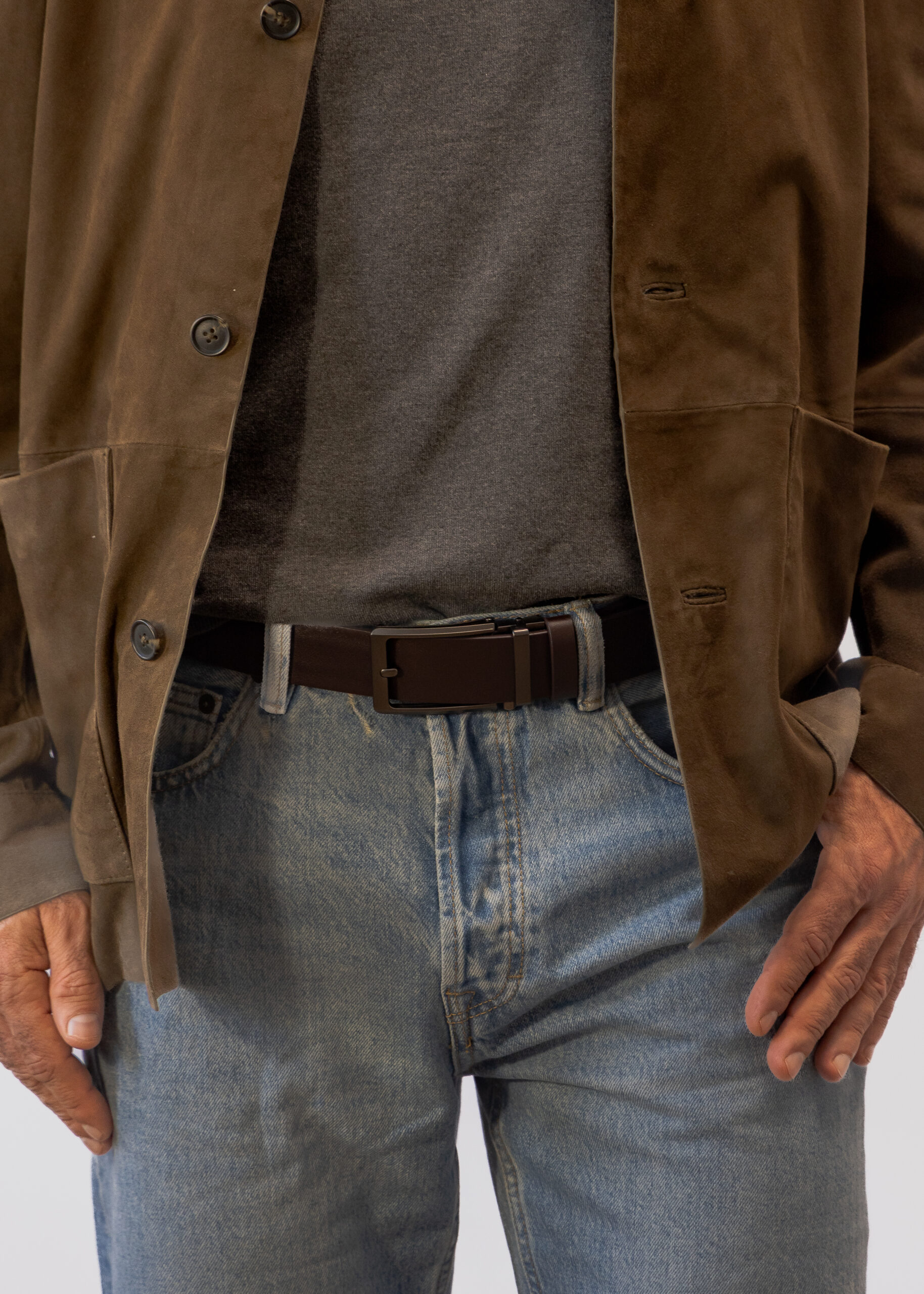 With its deep brown tone and clean, minimal design, Atlas pairs just as well with tailored trousers and a shirt as it does with jeans and sneakers. It’s a versatile men’s leather belt that works for both office days and evenings out.
