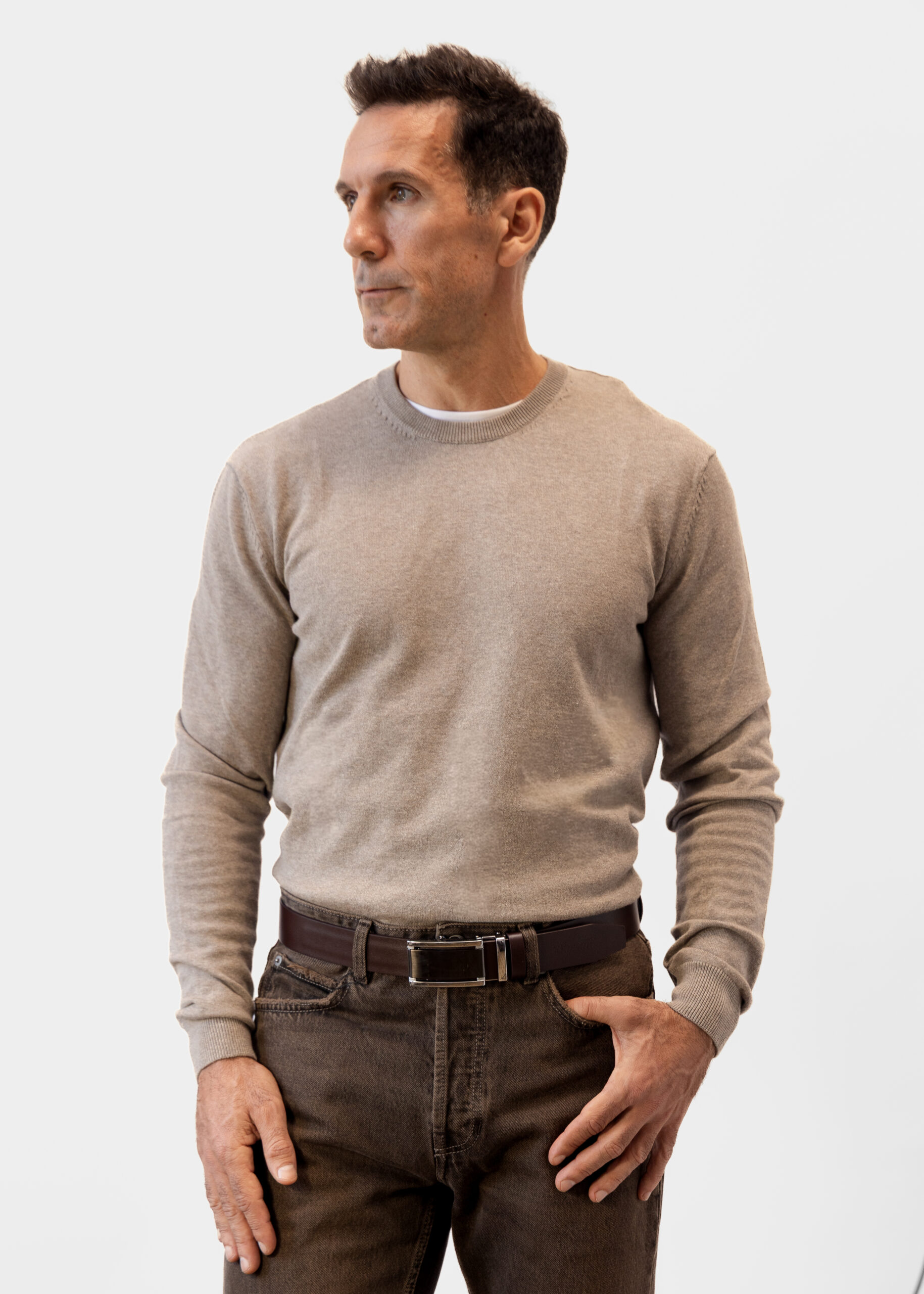 With its deep brown tone and clean, minimal design, Orion pairs just as well with tailored trousers and a shirt as it does with jeans and sneakers. It’s a versatile men’s leather belt that works for both office days and evenings out.