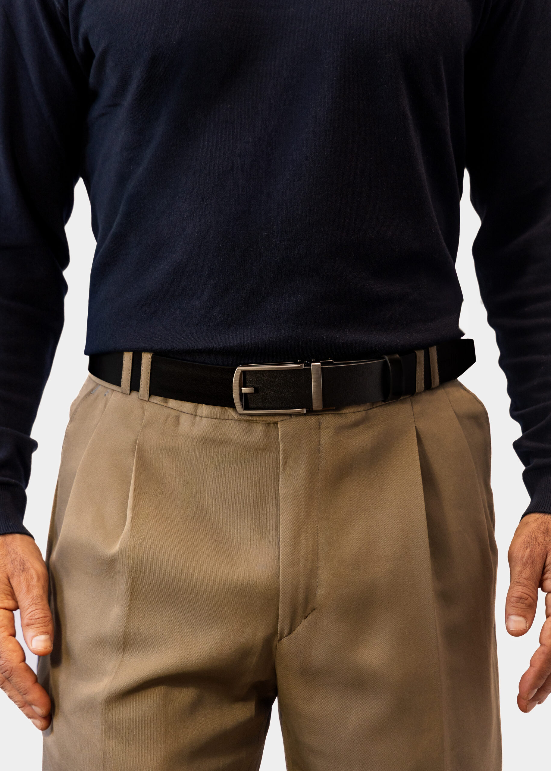 Upgrade your everyday style with Titan, our black automatic buckle leather belt crafted from premium, premium full grain leather. The sleek automatic buckle ensures a perfect fit without holes, making it easy to adjust for all-day comfort. A timeless dark black finish and clean, minimal design make Titan the ideal men’s leather belt for both business and casual outfits.